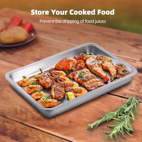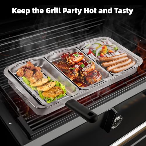 【Premium Stainless Steel Construction】- These stainless steel bbq pans for grilling are made with food-grade, heavy-duty stainless steel that resists rust and corrosion. Built to last, they are durable enough to handle high-heat grilling and ensure safe cooking for your loved ones.