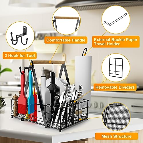 Grill Caddy, BBQ Caddy for Outdoor Grill, Camping Caddy for Plate Cutlery, Picnic Condiment Caddy, Outdoor Kitchen Barbecue Accessories, RV Patio Tailgate Essentials, Grilling Gifts for Men