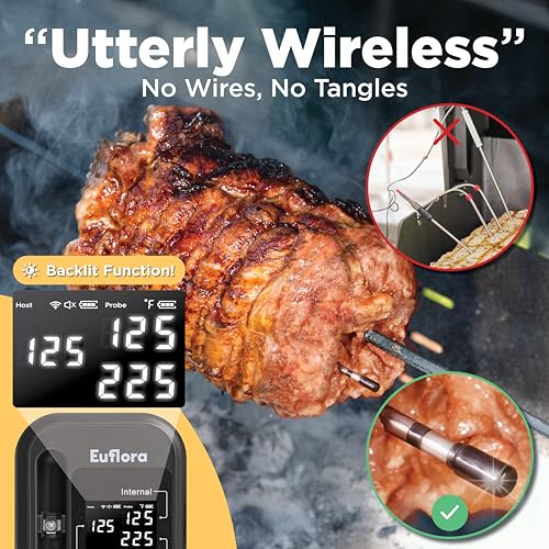 Host Display & Control | Monitor ambient and meat temperatures directly on the Host display without the app. Use the app to track cooking time, set temperatures, and receive alerts. Euflora makes grilling and smoking oversight easy.