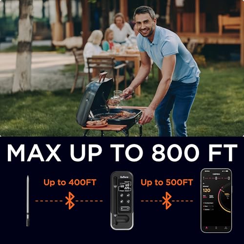 Wireless Meat Thermometer with Digital Meat Probe, Measures Internal & Ambient Temp, 800FT Bluetooth Meat Thermometer with Host Control for Barbecue, Outdoor Grilling, Oven & Smoker (Black)