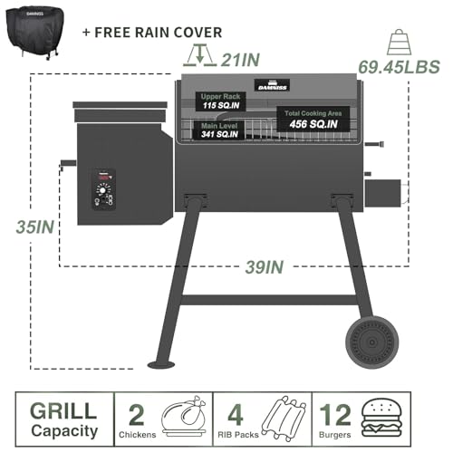 Specification: Grills DAPG-03 Electric Wood Pellet Smoker Grill, 456 SQ.IN Cook Area Pellet Grill with Auto Feed & PID Temperature Control (180-450°F), 8 in 1 BBQ Grill for Backyard Outdoor