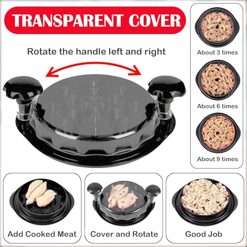 Creative Twist & Transparent Lid Design: Twist the ergonomic handle of the shredder for chicken to activate durable plastic blades inside the chicken breast shredder tool twist, evenly shredding food in seconds with meat shredder tool twist machine. The clear lid of the manual meat chopper lets you monitor progress and stop at your ideal texture—whether BBQ or fine for recipes like enchiladas!
