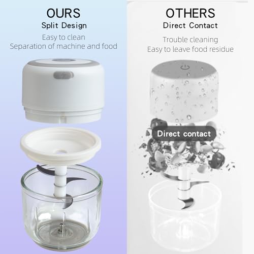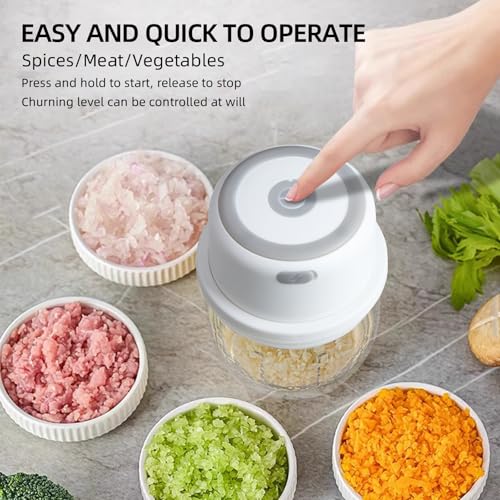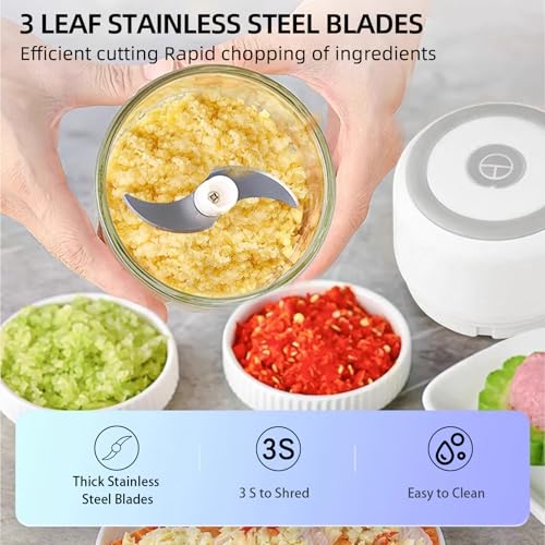 Specification: Electric Garlic Chopper Portable Small Food Processor, 300ML Glass Containers with Food Divider, Waterproof Body, One-touch Press to Chop Onion For Ginger, Chili, Fruit, Meat, Spices, Beans