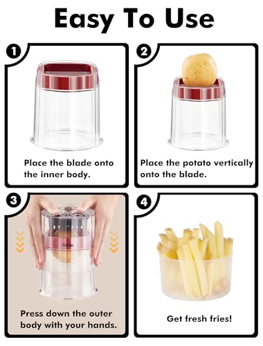 Cut in One Second : Chop! Chop! Chop! Quickly get you prepped standard french fries by this magical french fry cutter with two sharp surgical stainless steel blades. Just a simple two-hand press, our vegetable chopper gets everything done in a split second