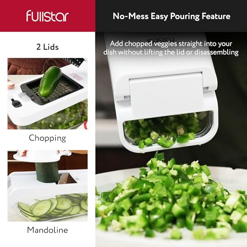 Specification: Fullstar Vegetable Chopper and Mandoline Slicer for Kitchen, Food Chopper with Container & Lid, Cheese Grater (8 in 1 – White)