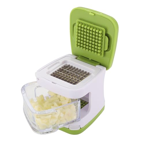 EASY TO USE: Its ergonomic design makes it easy to press the cloves with a palm. The garlic slices or dices are collected into the container. No need to change the blade as long as the up and down flip can achieve the conversion of dicing and slicing.