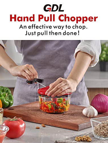 GDL Manual Food Chopper, Hand Pull String Onion Chopper Cutter, Dishwasher Safe Vegetable Chopper Food Mincer, No BPA Food Grade Material, 2.5 Cups 0.6L