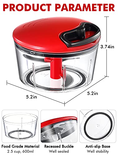 Specification: GDL Manual Food Chopper, Hand Pull String Onion Chopper Cutter, Dishwasher Safe Vegetable Chopper Food Mincer, No BPA Food Grade Material, 2.5 Cups 0.6L