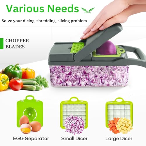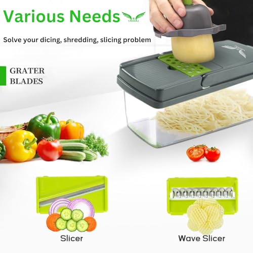 Specification: Vegetable Chopper, Pro Onion Chopper, Multifunctional 16 in 1 Food Chopper, Kitchen Vegetable Slicer Dicer Cutter, Veggie Chopper With interchangeable Blades, Food Chopper With Conteiner (Grey/Geen)