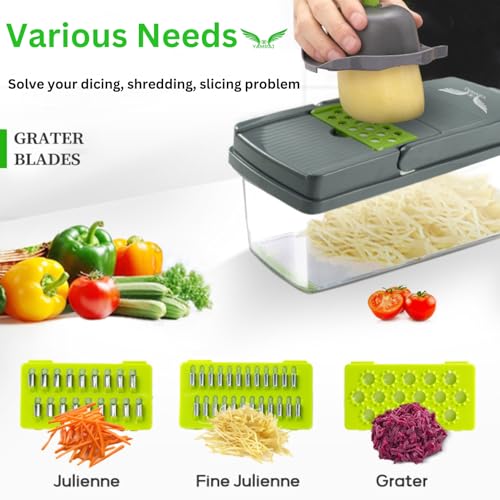 Vegetable Chopper, Pro Onion Chopper, Multifunctional 16 in 1 Food Chopper, Kitchen Vegetable Slicer Dicer Cutter, Veggie Chopper With interchangeable Blades, Food Chopper With Conteiner (Grey/Geen)