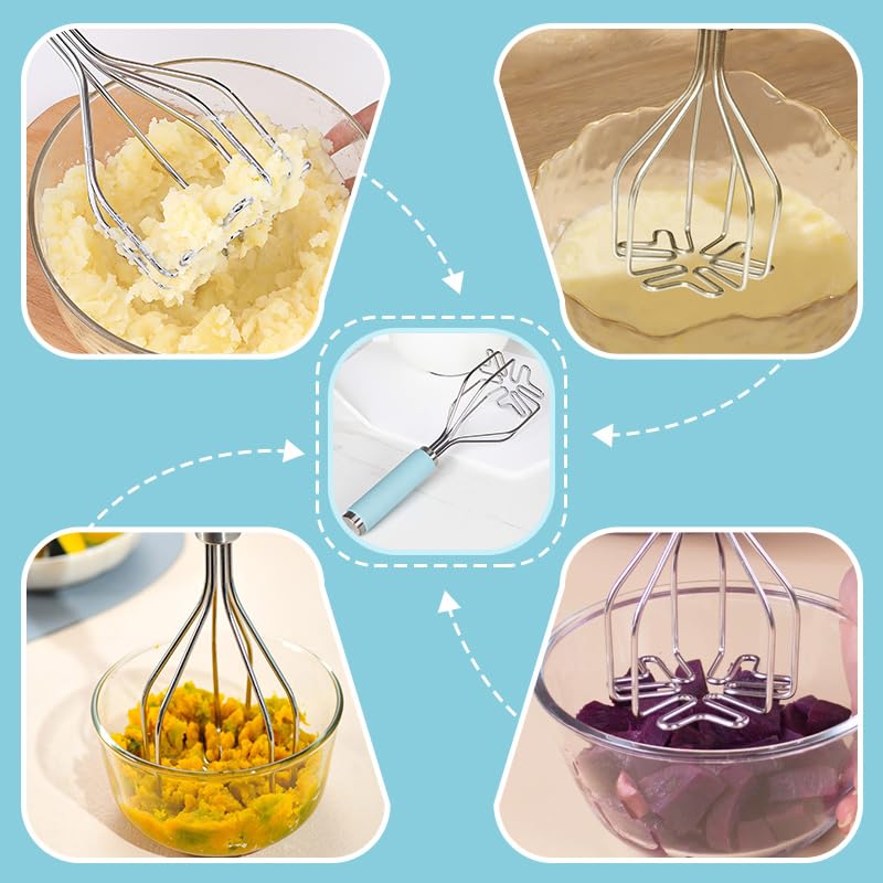 Premium Stainless Steel Construction: Made of food-grade high-quality stainless steel, these mashers are sturdy, strong, and rust-resistant. The thick twisty wire and smooth edge design ensure durability and comfort.