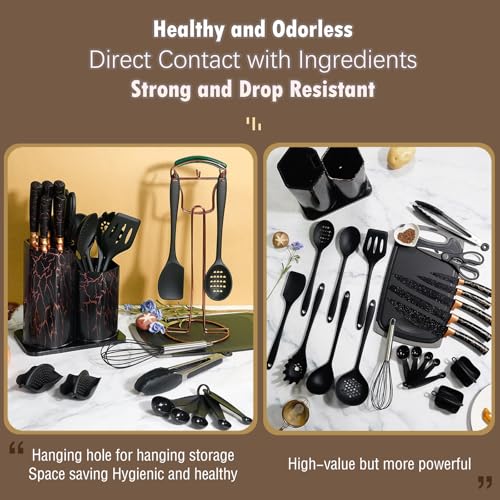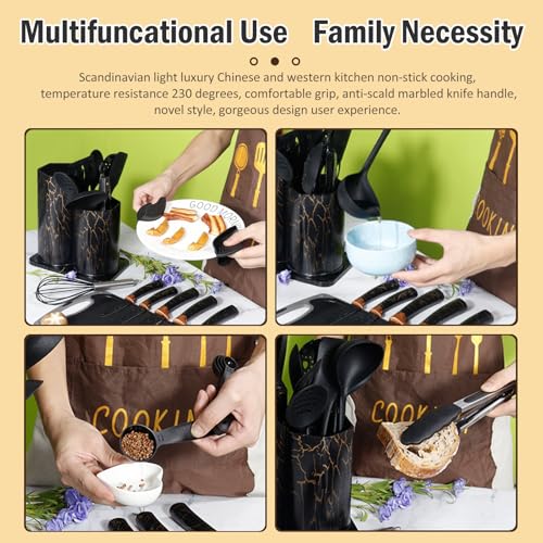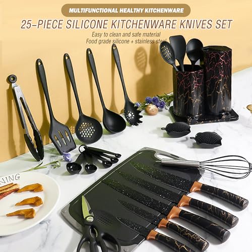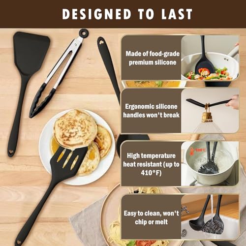 Kitchen Utensils Set, Non-Stick Silicone Kitchen Cooking Utensils, Kitchen Spatula Cookware Utensils Set, Heat Resistant Silicone Kitchen Gadgets (Black 25 PCS Set)