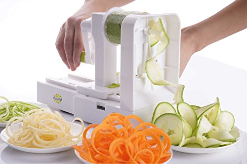 Specification: Folding 5-Blade Spiralizer – Vegetable Spiral Slicer Zucchini Spaghetti Noodle and Pasta Maker For for Low Carb/Paleo/Gluten-Free Meals By Vinipiak