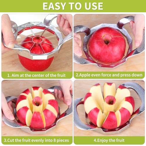 Specification: LIIGEMI Stainless Steel Apple Slicer,8 Blade Apple Corer and Cutter for Various fruits, Sharp and Sturdy, Anti-slip Handle Easy to Use.