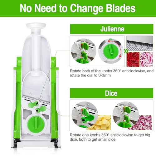 Specification: Masthome 5 in 1 Vegetable Chopper, Safe Mandoline Slicer,Professional Vegetable Slicer, Julienne&Dicer for Vegetables,Potato Slicer,Thickness Adjustable 0.1-8 mm Artifact Fast Meal Prep(Green)