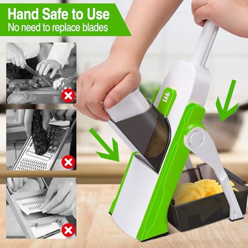 Masthome 5 in 1 Vegetable Chopper, Safe Mandoline Slicer,Professional Vegetable Slicer, Julienne&Dicer for Vegetables,Potato Slicer,Thickness Adjustable 0.1-8 mm Artifact Fast Meal Prep(Green)