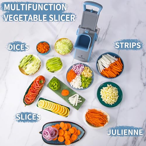 ONCE FOR ALL Upgrade Safe Mandoline Slicer Plus, Biger Size, Adjustable Vegetable Food Chopper Potato Fries Cutter, Detachable Blade, Kitchen Chopping Artifact, Gift (SkyBlue)