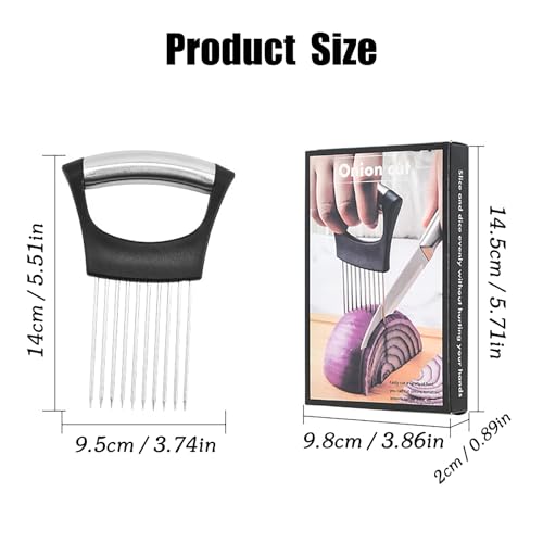 【Time-Saving Solution with the Multifunctional Onion Slicer】Bid farewell to tedious and time-consuming slicing. Our stainless steel onion holder is equipped with sharp prongs to prevent slippage and ensure uniform cuts, guaranteeing enhanced safety while slicing onions, avocados, eggs, and other vegetables.