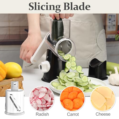 Specification: Cambom 5 in 1 Rotary Cheese Grater Hand Crank Cheese Shredder for Fresh Cheese, Vegetable, Nuts,Non-slip Suction Base, Black