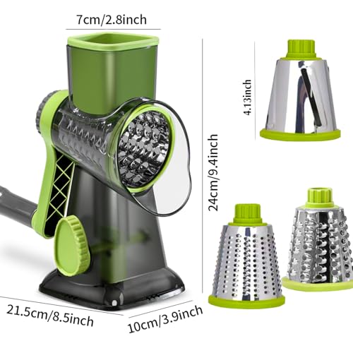 Specification: Cheese Grater Rotary Cheese Grater,Versatile Cheese Shredder,Blades for Shredding, Grating, Slicing,Cheese Shredder with Suction Base and Cleaning Brush Kitchen Gift (green)