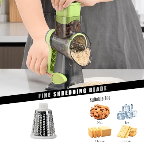 Cheese Grater Rotary Cheese Grater,Versatile Cheese Shredder,Blades for Shredding, Grating, Slicing,Cheese Shredder with Suction Base and Cleaning Brush Kitchen Gift (green)