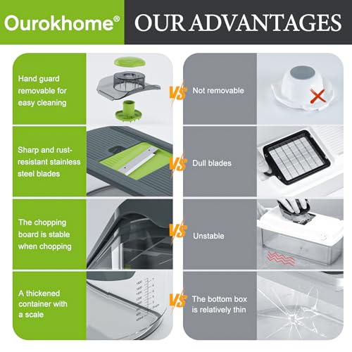 A kitchen essential gadgets – Whether you’re a novice cook or a seasoned pro, the Ourokhome 10 in 1 mandolin slicer and spiralizer is a must-have in any kitchen. It’s versatile, easy and safe to use and store, and backed by our 100% satisfaction guarantee.