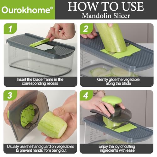 Specification: Ourokhome Mandolin Slicer with Handheld Spiralizer, Hand Safe Vegetable Shredder with 6 Mandoline Blades, Veggie Waffle Cutter for Potato, Carrot, Zucchini, Essential Kitchen Gadgets (10 in 1, Gray)