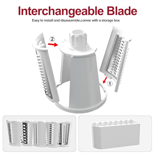 Easy to Clean And Storage: All parts of cheese grater, include the blades, are detachable, which is convenient and simple to clean, the blades are also top rack dishwasher safe; The included blades storage box, can better protect your fingers