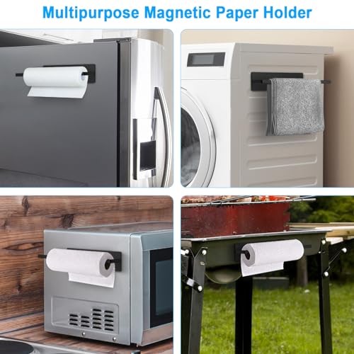 Versatile Magnet Towel Paper Holder: Under cabinet towel holder with super strong magnet can be attached on many home stuff like stove, oven, metal cabinet, grill, tool box, sink, dishwasher, washing machine, metal shelves, filing cabinets that have a metal surface. It is widely used in kitchen, camper, rv, bathroom, toilet, laundry room, pantry, craft room, garage, hotel, college dorm and apartment, for hanging kitchen paper towel rolls, kitchen towels, plastic wrap, tinfoil and small items.