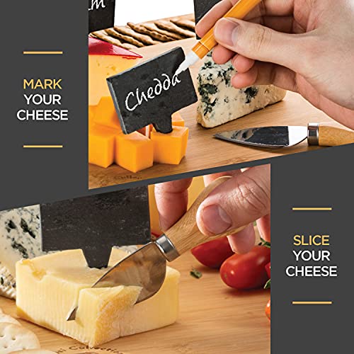 DURABLE & SUSTAINABLE BAMBOO CHEESE BOARD: Crafted from 100% natural bamboo, this cheese board set is both durable and eco-friendly, making it a lasting addition to your kitchen for regular use. Ideal for housewarming gifts new home, bridal shower gifts, or as part of your holiday table, this charcuterie board stands up to frequent use with style and sustainability