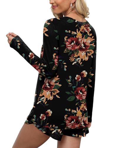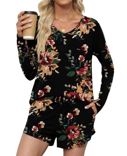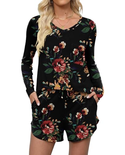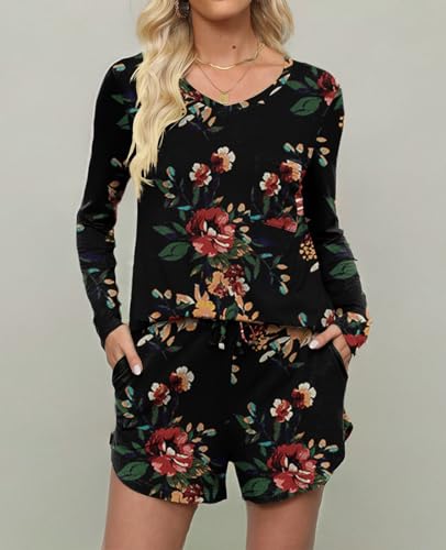 Material: Crafted from a soft and lightweight fabric, our pajama set ensures a comfortable and skin friendly experience. The breathable material makes it ideal for year-round wear. Designs: This cute pajama set boasts a charming combination of long sleeves, a v neck, solid colors, and floral patterns. The addition of pockets and a loose fitting design allows for easy dressing up or down, making it a versatile choice for any occasion. Size Tips: With five available sizes, finding your perfect fit is a breeze. Please refer to the size chart in the last picture to ensure the right fit for your long sleeve short pajamas set. Match Style: Suitable for various occasions, this sleep lounge set transitions effortlessly from home loungewear to a night out, making it perfect for parties, sleepwear, leisure time, and casual wear. Garment Care: Maintain the pristine condition of your pajama set with ease. It’s machine washable and hand washable, using low temperature water and a mild, gentle soap. Avoid bleach and opt for hang or line drying. Unique Features: Tops: Classic chest pocket and V neck with exquisite hemming workmanship for added style. Shorts: Elastic drawstring and side pockets provide a comfortable fit for any body size. Ultra soft, breathable, and stress free nightwear to keep you comfortable throughout the night. Versatile Wear: Whether it’s a cozy fall evening or a casual day out, our Women’s Long Sleeve Pajamas Set with Shorts is your choice for cute, comfy sleepwear. Elevate your loungewear with this 2 piece pajama set, ensuring a perfect blend of style, comfort, and functionality.