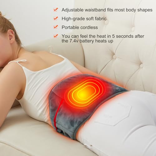 Heated Waist Wrap Pad for Back Waist Abdomen, Portable Cordless Heating Pads with 7.4v 10000mAh Battery Included Heating 3 Levels Temp Setting