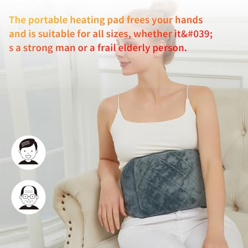 Comfortable material: The portable lumbar heating pad is made of soft and skin-friendly plush, with fast heating film and insulation layer for better heat absorption. High-quality materials and highly elastic straps make it comfortable to wear and easy to walk on.
