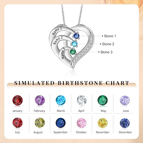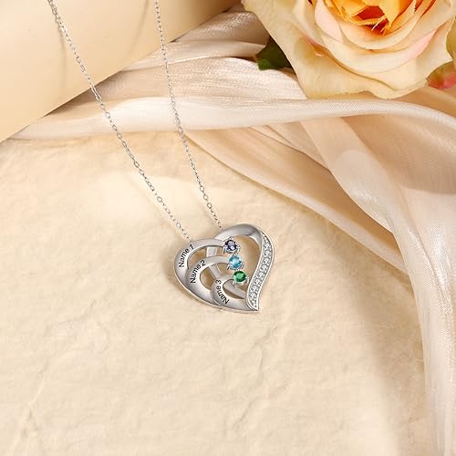 Jewelstruck Personalized Mothers Necklace with Birthstones Sterling Silver Necklace for Women Engraved Names Anniversary Birthday Gifts for Mom Wife Nana Mothers Day Gift Ideas