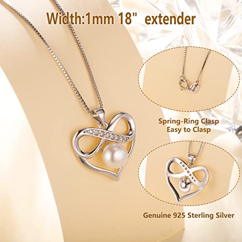 Nonnyl Pearl Necklaces for Women, Rearl Freshwater Pearls Heart Pendant Necklace Christmas Gifts for Mom Wife Girlfriend, Anniversary Birthday Mothers Day Gifts Jewelry Gifts for Her