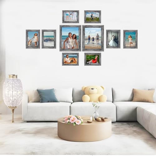 [What You Get] These 10 pack picture frame set of different photo frames with 4 pcs 4×6 picture frames, 4 pcs 5×7 picture frames, 2pcs 8×10 picture frames, let you create a photo collage of unforgettable memories, pairing with various wall decor in practically any home; or fill the multi picture frames with special photos as a perfect gift for a birthday or holiday