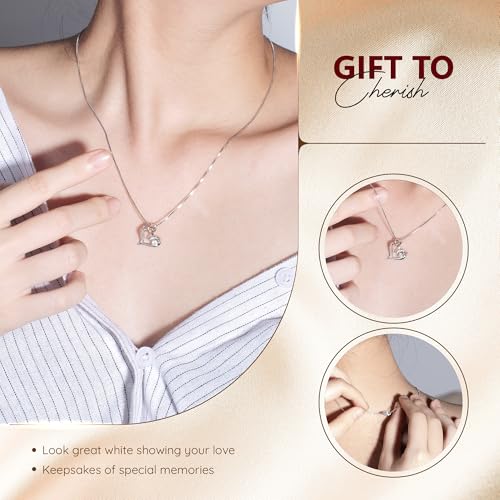 Our necklace is crafted in brilliant 14k white gold on high quality polished surgical stainless steel. All metals we use are nickel-free, lead-free and hypoallergenic; This means it won’t irritate, itch, or make your skin blue or red. Slender yet sturdy, this handmade pendant will never fade and last a lifetime. It is a perfect gift for your Wife, Girlfriend, Soulmate, Fiancé,…