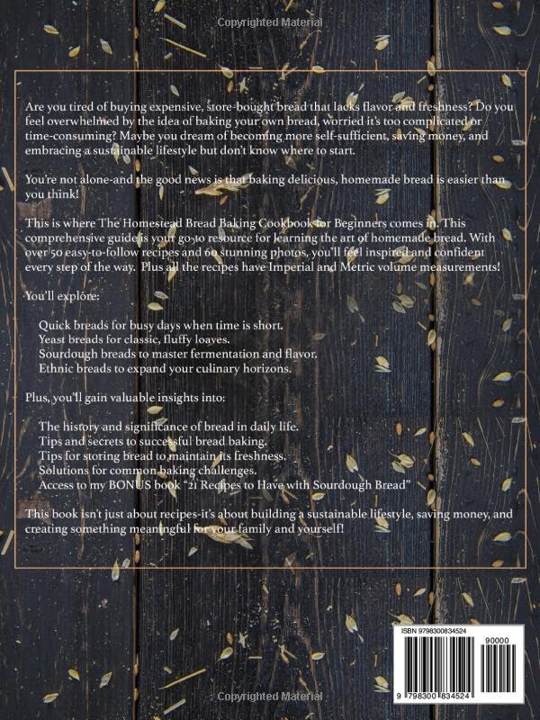 Specification: The Homestead Bread Baking Cookbook for Beginners: Learn the art of making homemade artisan breads at home; tips, secrets & 50+ easy, everyday recipes to bake quick, yeast, sourdough & ethnic loaves Paperback – January 8, 2025