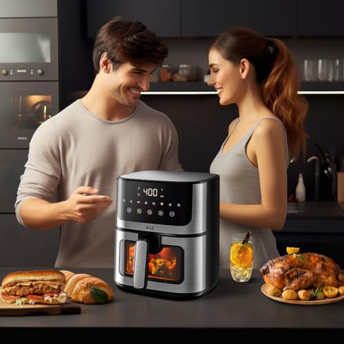 TRANSPARENT WINDOW: The classic 5 qt ASZ airfryer Visual features a transparent viewing window in front of basket, allowing you to monitor the cooking process of food visible in real-time and adjust the desired level of doneness and crispiness.