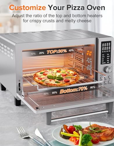 CUSTOMIZE YOUR PIZZA OVEN – Adjust the ratio of top and bottom heaters from 0 to 100% and convection fan speed for different types of heating zones. To bake a perfect thick pizza, set bottom heaters at 70% power & top heaters at 30% for crispy perfectly melted cheesy toppings and crunchy crust.