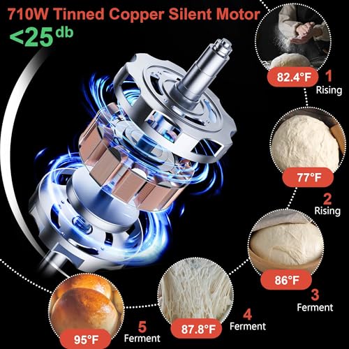 20 MENUS & 3LB LARGE CAPACITY & 710W HIGH EFFICIENCY PERMANENT MAGNET DC POWERFUL MOTOR: The automatic bread maker has 20 menus including French, gluten-free, pizza, dough, sourdough. yogurt, etc. 3LB bread machine is perfect for 6-7 people. The stainless steel breadmaker combined with an smart speed system to quickly mix 3LB dough, a fully enclosed motor design with 1mm high precision bearings to reduce friction, reducing noise by 25 db, 4 anti-shaking feet and 3 built-in silicon steel sheet cores to increase motor efficiency up to 95%.