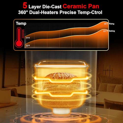 3LB Larger & 20-in-1 Ultra Quiet Bread Maker Machine, 710W Die-Cast Ceramic Pan Bread Machine with Dual Heaters, Stainless steel Breadmaker with Auto Fruit Dispenser & 2 Custom Menus,Extra 2 Paddles