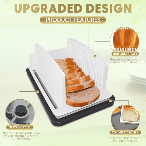 Specification: Bread Slicer for Sourdough Rounds – Adjustable Bread Slicing Guide With Crumb Tray & Compact Bread knife for kitchen – Manual Bread Slicer For Homemade Bread Perfect Bread Making gifts