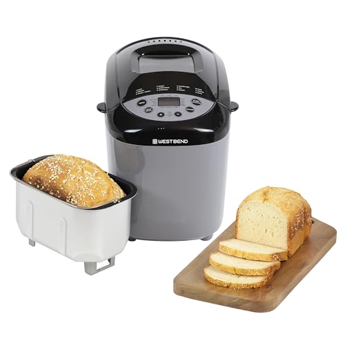 West Bend 47413 Hi-Rise Programmable Bread Maker Machine with Horizontal Dual Blade and 12 Programs, Including Gluten Free Mode, 3 Lb, Gray