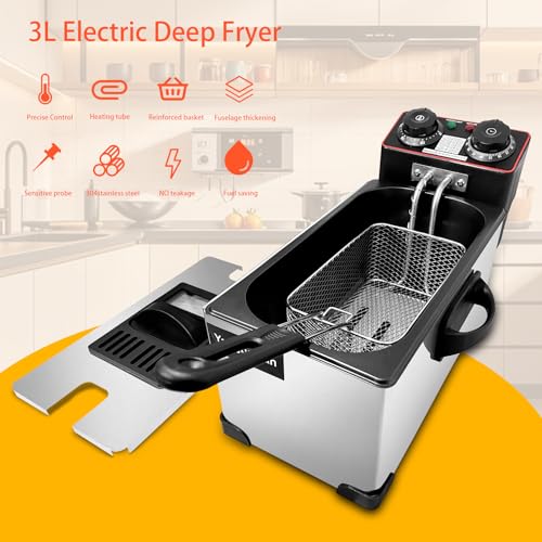 Specification: Deep Fryer with Basket, Yangbowan 3L 1300W Electric Deep Fryers for Home Use with Temperature Control, Timer Control,View Window Lid,Stainless Steel Body Deep Fryer Pot for Restaurant Home Use