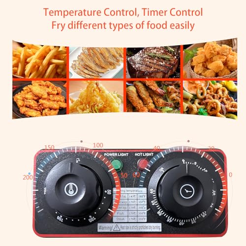Temperature and Timer Control – This deep fryer with basket features temperature control function and 60 minutes timer, temperature can be adjusted from 122°F to 390°F (50°C-200°C). An installed guard plate effectively balances oil temperature and ensures food is fried evenly. This home fryer will be automatically shut off when the temperature is over 240°C (464°F) or reach the temperature you set.