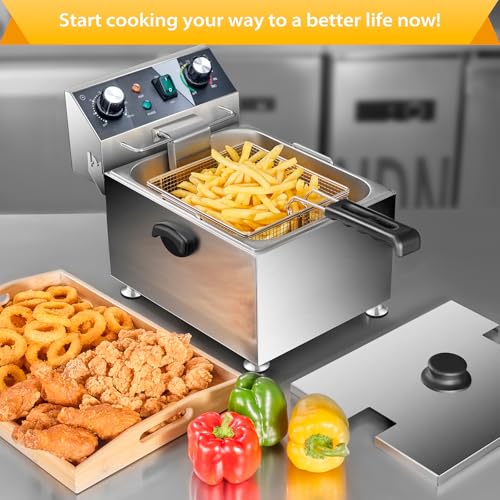 2.High quality deep fryer: Commercial Deep Fryer with weighing 18.7pounds thickened design, with anti-scald handles on both sides, stainless steel adjustable support feet, 304 stainless steel basket, large handle handheld lid design, fine workmanship does not hurt the hand