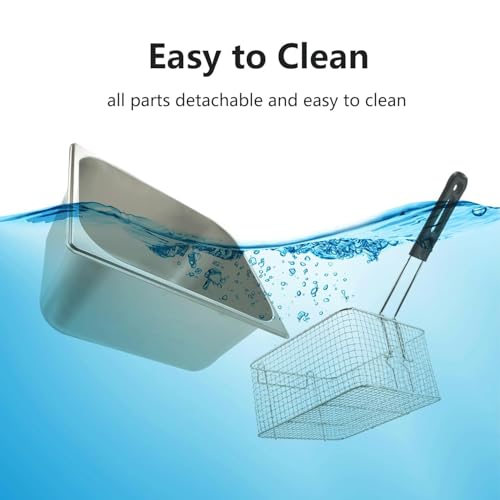 【Easy to Drain and Clean】After frying, the deep fryer basket can be hung on the fryer head to drain excess oil, keeping your food flavorful and reducing mess. Additionally, all parts except the fryer head are detachable and easy to clean, making maintenance a breeze.