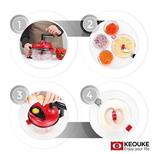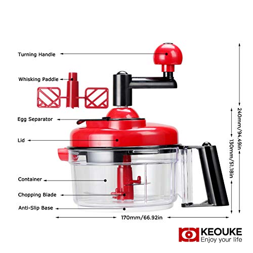 Specification: KEOUKE Onion Chopper Food Chopper- Hand Crank Food Processor Chops chili, Vegetable, Nuts, Fruits, Salad with a Egg Separator