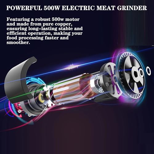 ROBUST 500W ALL-COPPER MOTOR- Our meat grinder is equipped with a powerful 500W all-copper motor, engineered for exceptional grinding efficiency and extended lifespan. This high-performance motor delivers smooth, consistent results, making it ideal for processing everything from meats to vegetables. Trust our food processor to offer the perfect blend of power, durability, and dependability for all your culinary tasks